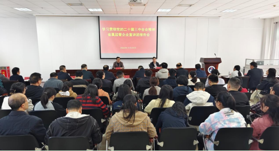 為深入學(xué)習(xí)貫徹黨的二十屆三中全會(huì)精神,按照省國(guó)資委安排,10月23日,學(xué)習(xí)貫徹黨的二十屆三中全會(huì)精神省屬監(jiān)管企業(yè)宣講團(tuán)到研究院宣講,省屬監(jiān)管企業(yè)宣講團(tuán)成員、省國(guó)資委企業(yè)隊(duì)伍建設(shè)處處長(zhǎng)唐志國(guó)作宣講輔導(dǎo),研究院黨委副書(shū)記、副院長(zhǎng)周波主持會(huì)議。