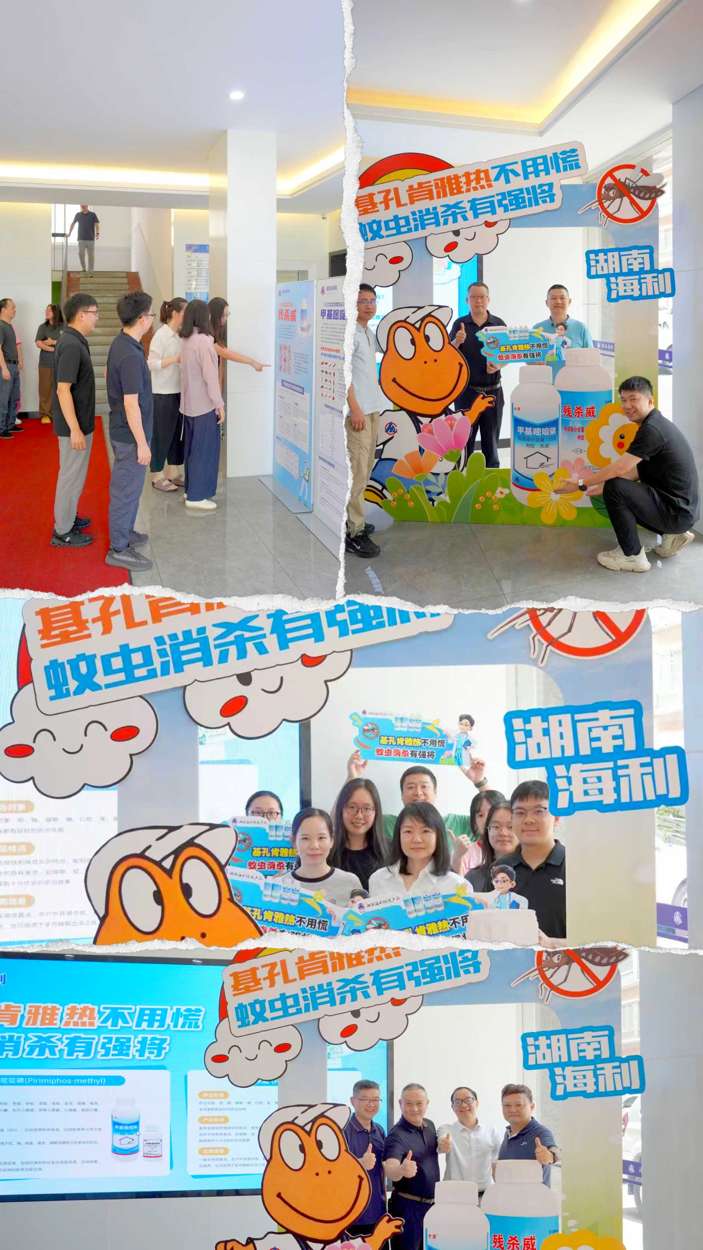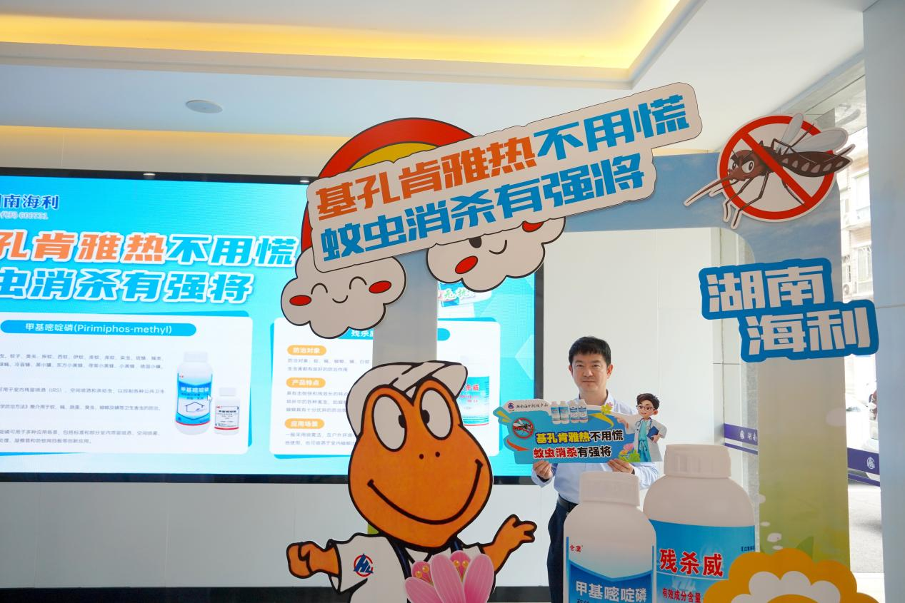 活動(dòng)以公眾號(hào)為起點(diǎn),陸續(xù)推出基孔肯雅熱科普專題五期。其間,以總部園區(qū)為載體,打造"電子屏+展板群+孽生地標(biāo)"三位一體科普空間。電子屏動(dòng)態(tài)滾動(dòng)播出基孔肯雅熱知識(shí)問答。多塊主題展板在辦公區(qū)與住宅區(qū)形成知識(shí)走廊,系統(tǒng)解析疫情分布圖譜、個(gè)人防護(hù)指南與環(huán)境治理方案。其中,湖南海利的甲基嘧啶磷憑借世界衛(wèi)生組織推薦的《重要媒介生物的化學(xué)防治方法》成為破解擬除蟲菊酯蚊蟲抗性的利器;殘殺威則以快速擊倒、長(zhǎng)效持效的特性,構(gòu)建起家庭與公共場(chǎng)所的雙重防護(hù)屏障?;顒?dòng)還首創(chuàng)"孽生地"關(guān)注模式,在垃圾站、池塘等數(shù)個(gè)蚊蟲極易滋生的高危區(qū)域設(shè)置風(fēng)險(xiǎn)標(biāo)識(shí)。