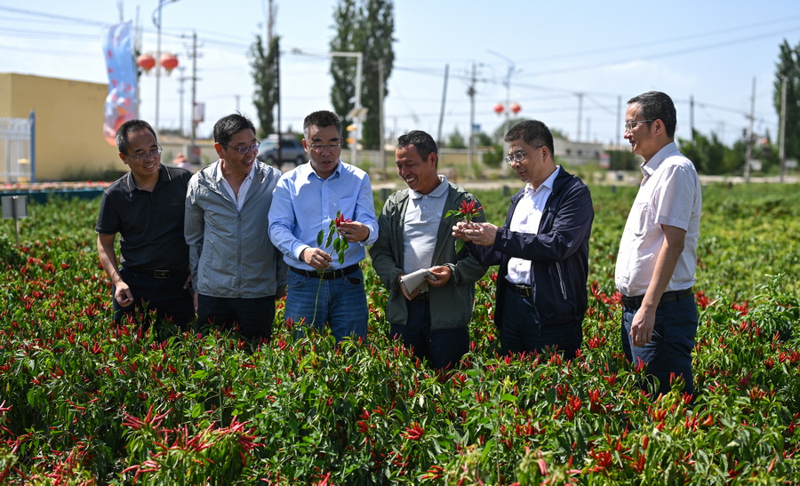 峰會現(xiàn)場,興蔬種業(yè)公司展示了豐碩的產(chǎn)業(yè)成果,在焉耆縣五號渠鄉(xiāng)頭號渠村,萬畝戈壁辣椒種植基地集中示范成果斐然,鄒學(xué)校團隊新培育的色素椒新品種“興蔬紅186”長勢旺盛。