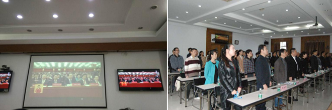 (集團(tuán)公司總部集團(tuán)機(jī)關(guān)、股份機(jī)關(guān)、后勤、工程益康4個黨支部組織收看現(xiàn)場)