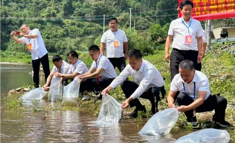 書香潤初心,助力生態(tài)美。5月29日,古丈縣政協(xié)“書香伴履職·學(xué)習(xí)聚共識(shí)”讀書分享會(huì)暨“改善生態(tài)環(huán)境民主監(jiān)督”活動(dòng)在巖頭寨鎮(zhèn)舉行。海利駐村工作隊(duì)全程參加了本次活動(dòng)。在鲇溪村,縣政協(xié)主席宋祖林及委員代表一行實(shí)地走訪了河流沿岸、垃圾處理場等重點(diǎn)區(qū)域,現(xiàn)場調(diào)研生態(tài)環(huán)境保護(hù)現(xiàn)狀,聽取干群意見,并就發(fā)現(xiàn)問題提出整改建議。活動(dòng)組還向鲇溪河投放魚苗20萬尾,以促進(jìn)水域生態(tài)修復(fù)。