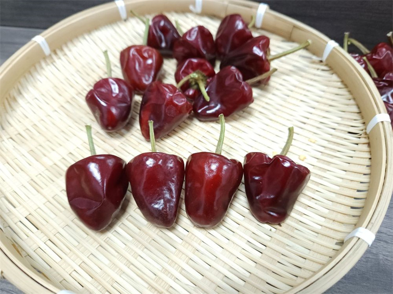 該品種為國(guó)家辣椒新品種技術(shù)研究推廣中心、湖南省蔬菜研究所新育成的單生朝天椒品種,首花節(jié)位9節(jié)左右,株高59厘米左右,株幅68厘米左右。果長(zhǎng)3.5厘米左右,果寬3.3厘米左右,果肉厚0.18厘米左右,單果重15克左右。果實(shí)綠色轉(zhuǎn)紅色,辣味較強(qiáng),適宜干制加工。