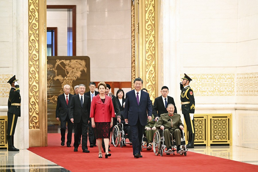 9月29日,中華人民共和國國家勛章和國家榮譽稱號頒授儀式在北京人民大會堂金色大廳隆重舉行。中共中央總書記、國家主席、中央軍委主席習近平向“友誼勛章”獲得者迪爾瑪·羅塞芙頒授勛章。新華社記者謝環(huán)馳攝