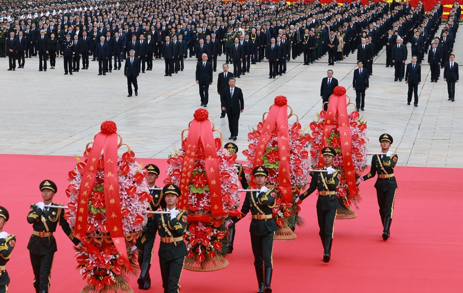 9月30日上午,黨和國(guó)家領(lǐng)導(dǎo)人習(xí)近平、李強(qiáng)、趙樂(lè)際、王滬寧、蔡奇、丁薛祥、李希、韓正等來(lái)到北京天安門(mén)廣場(chǎng),出席烈士紀(jì)念日向人民英雄敬獻(xiàn)花籃儀式。新華社記者殷博古攝